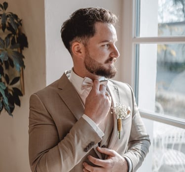 Die Vorbereitungen am Hochzeitstag sind voller besonderer Augenblicke: Die Nervosität beim Anziehen des Brautkleides, das Lachen mit den Trauzeugen und die Vorfreude, die in der Luft liegt. Diese Momente voller Emotionen halte ich für euch fest – von den ersten Make-up-Pinseln bis hin zu den letzten Handgriffen am Outfit.